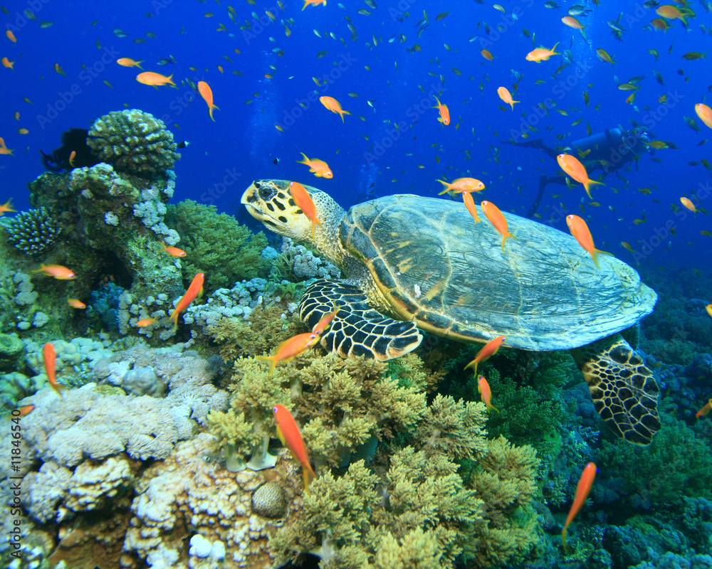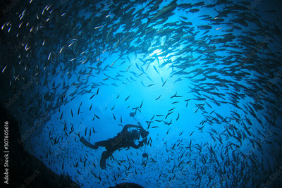 Scuba dive underwater coral reef