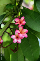 Colorful flowers in the garden.Plumeria flower blooming.Beautiful flowers in the garden Blooming in the summer.Landscaped Formal Garden.
