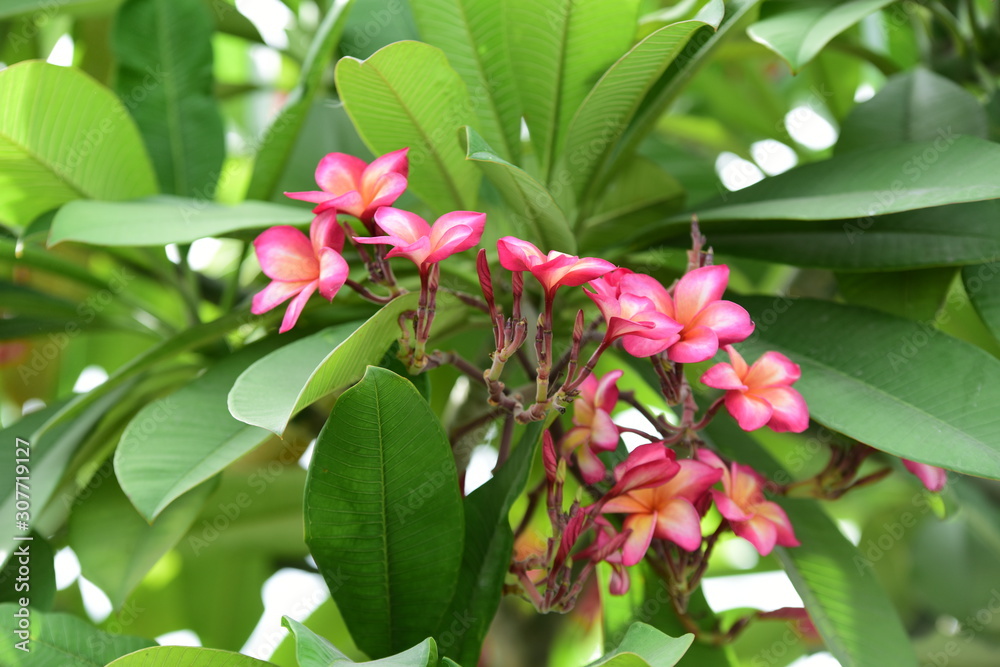 Colorful flowers in the garden.Plumeria flower blooming.Beautiful flowers in the garden Blooming in the summer
