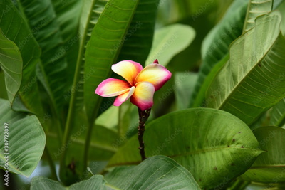 Colorful white flowers in the garden. Plumeria flower blooming.