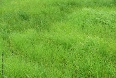 Vast green field at gorgeous sunset, a colorful panoramic landscape