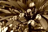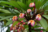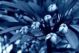Flowers are blooming In the breeding season Has a green foliage background.white and yellow Plume