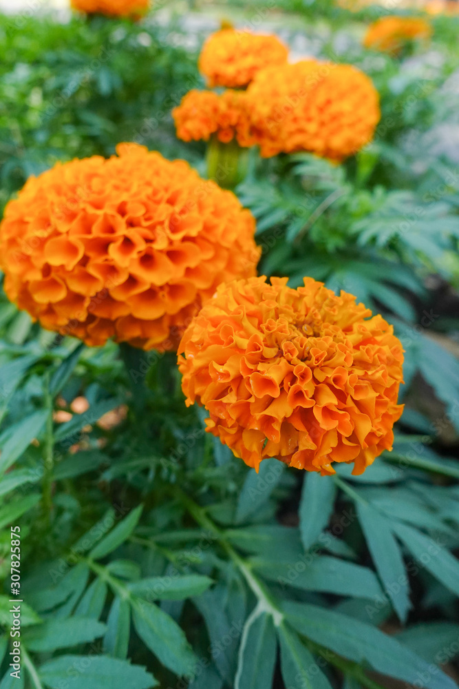 Fresh Marigold orange flower in garden