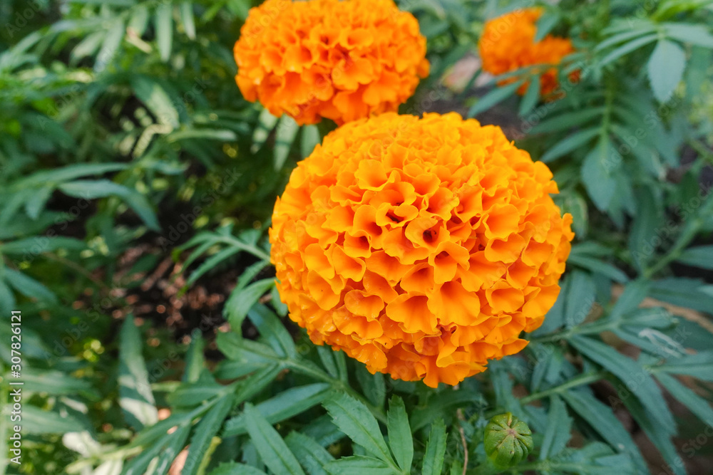 Fresh Marigold orange flower in garden