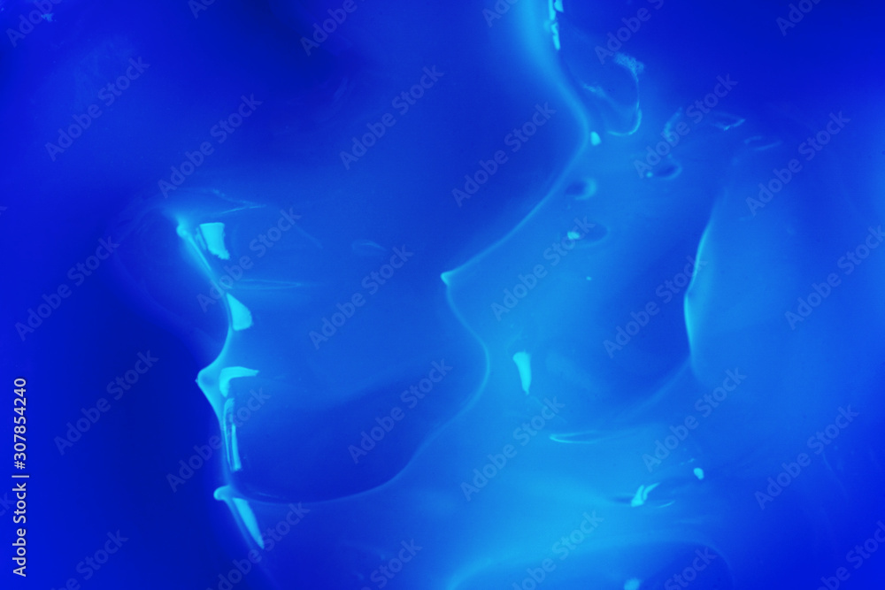 The creamy texture of the blue classic blue color of the 2020 year. Cosmetic trendy background. Concept of the color of the year.