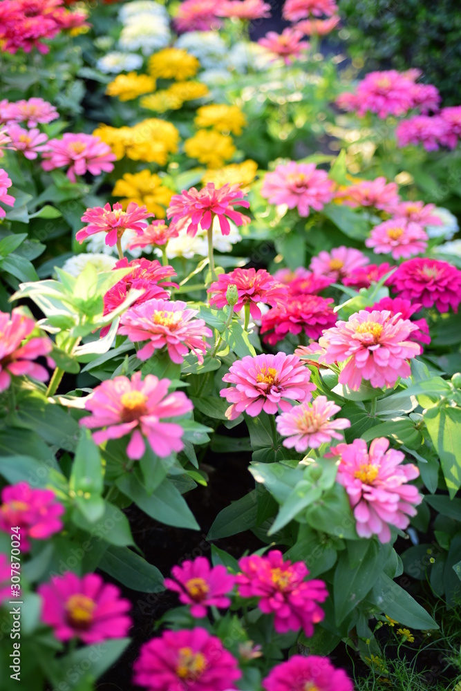 Chrysanthemum pattern in flowers park. Cluster of orange chrysanthemum flowers. Beautiful chrysanthemum as background