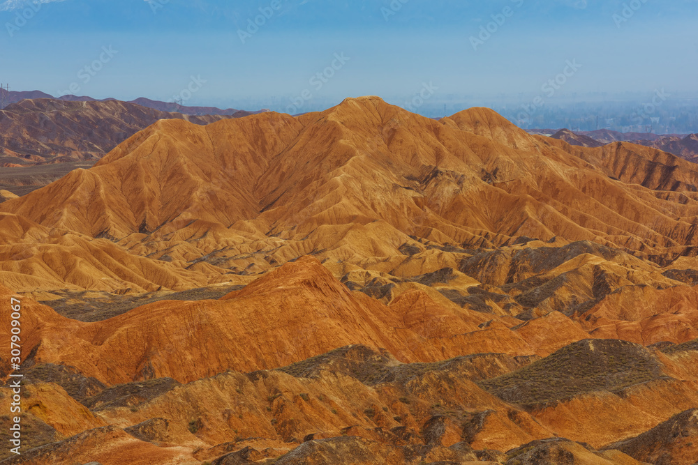 view of Rainbow Mountains in Zhangye Danxia Landform Geological Park
