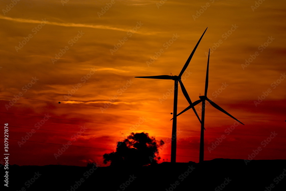 Windräder im Sonnenuntergang