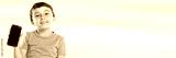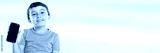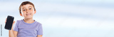 Young boy child holding smartphone smart cell phone banner copyspace copy space cellphone marketing ad advertising