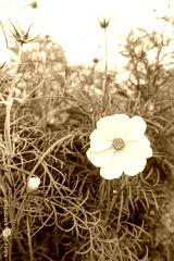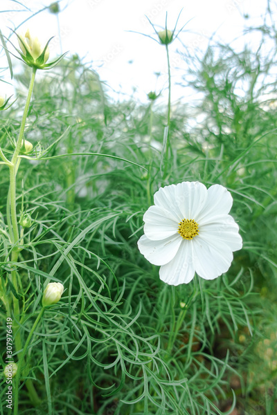 white cosmos with yellow pollen in garden