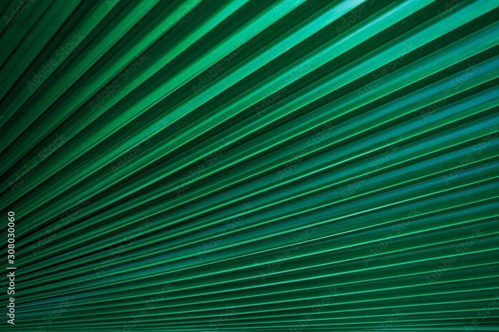 tropical palm leaf and shadow, abstract natural green background, dark blue tone
