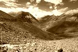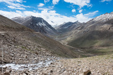 Ladakh, India - Aug 03 2019 - Beautiful scenic view from Between Khardung La Pass (5359m) and Leh in Ladakh, Jammu and Kashmir, India.