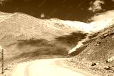 Ladakh, India - Aug 03 2019 - Beautiful scenic view from Between Khardung La Pass (5359m) and Leh in Ladakh, Jammu and Kashmir, India.