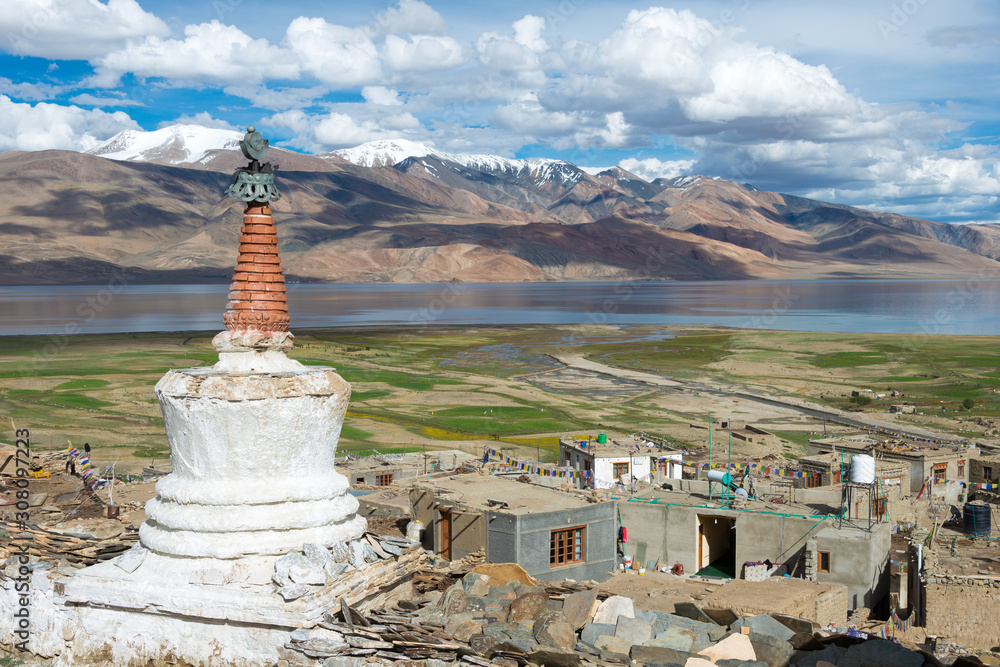 Ladakh, India - Jul 30 2019 - Korzok Village in Changthang Plateau, Ladakh, Jammu and Kashmir, India.