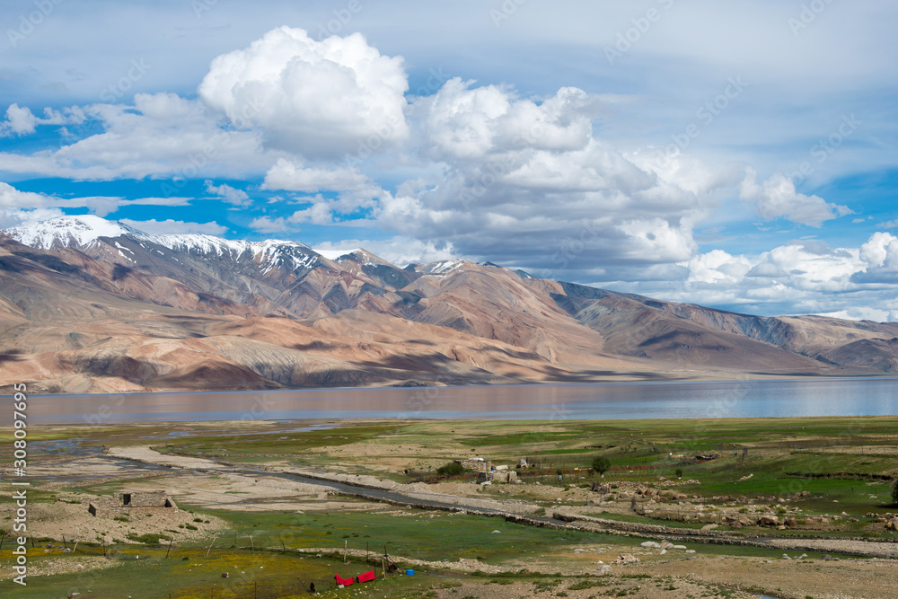 Ladakh, India - Jul 30 2019 - Tso Moriri Lake in Changthang Plateau, Ladakh, Jammu and Kashmir, India. It is part of Ramsar Convention - Tsomoriri.