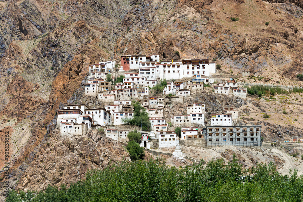 Zanskar, India - Aug 15 2019 - Kursha Monastery (Karsha Gompa) in Zanskar, Ladakh, Jammu and Kashmir, India.