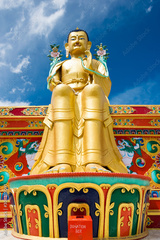 Ladakh, India - Aug 20 2019 - Buddha Statue at Likir Monastery (Likir Gompa) in Ladakh, Jammu and Kashmir, India. The Monastery was Rebuilt in 1065.