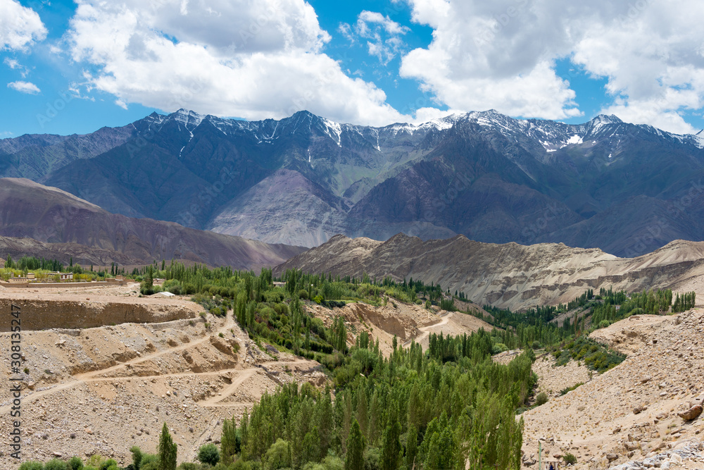 Ladakh, India - Aug 20 2019 - Beautiful scenic view from Likir Village in Ladakh, Jammu and Kashmir, India.