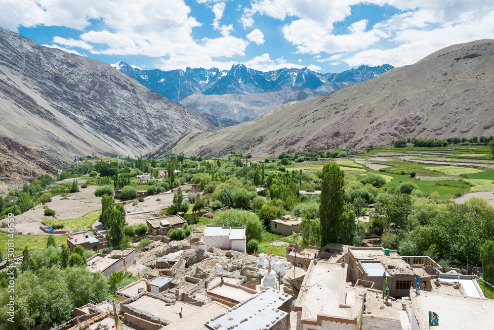 Ladakh, India - Aug 22 2019 - Hemis Shukpachan Village in Sham Valley, Ladakh, Jammu and Kashmir, India.
