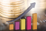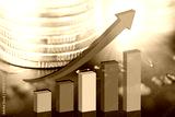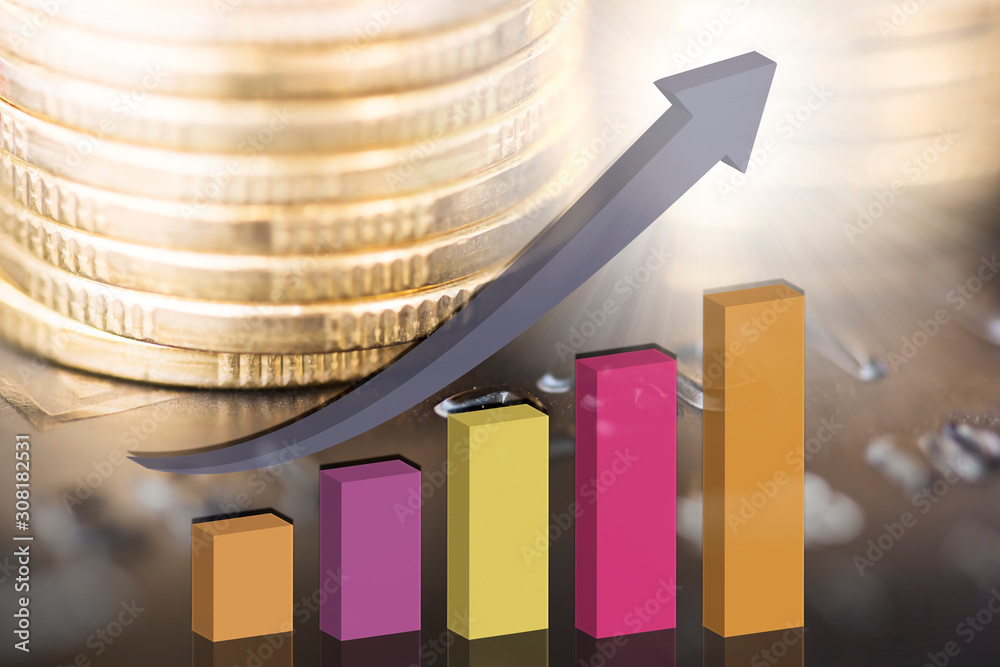 Gold COINS stacked on credit CARDS, economic growth, financial growth concept creative map