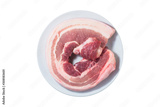 A selection of pork belly on white background