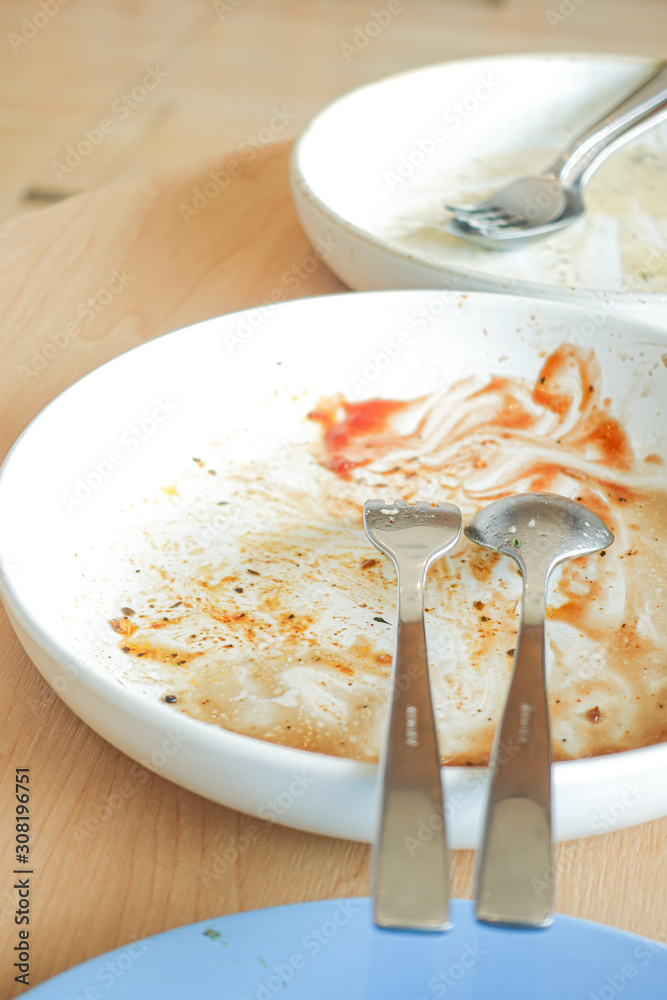 dirty plate on the table