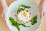 Fried rice with beef, holy basil and thai herb served with poached egg