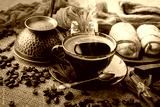 Black coffee on an old background in a cup