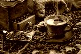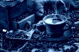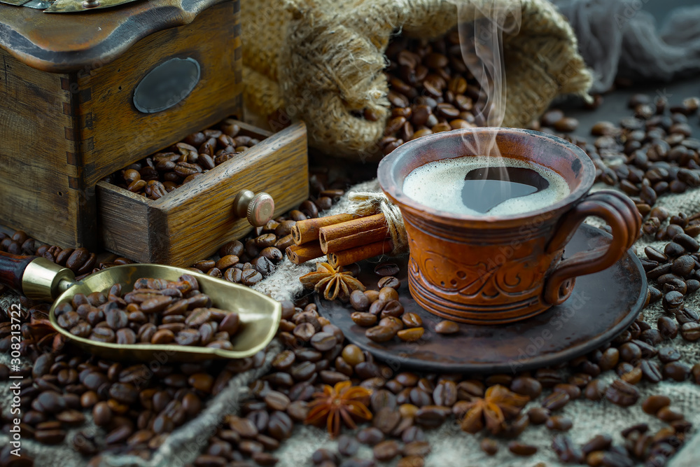 Black coffee on an old background in a cup