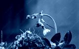 small snails dangling from flowers on green mossy stones isolated on a black background