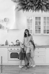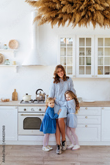 Mother with her kids in the kitchen to xmas, casual lifestyle photo series in real life interior