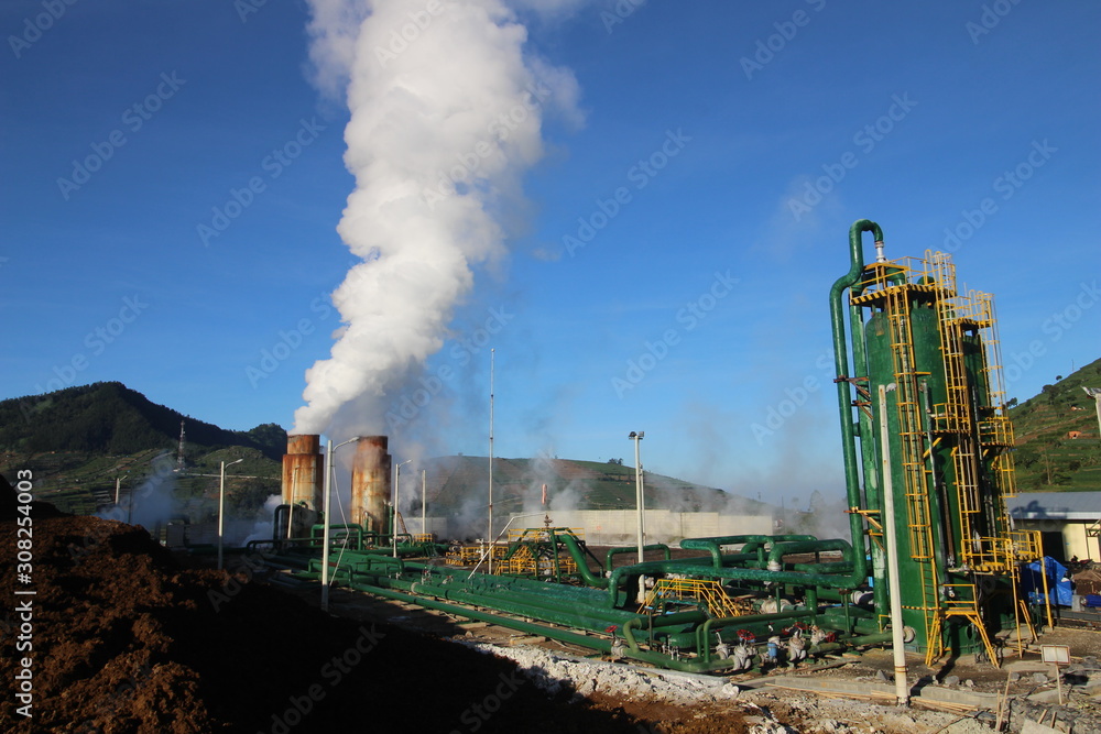 geothermal supplier that emits smoke which is located on an active mountain in Dieng ,Indonesia