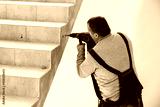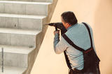 Worker with drill machine