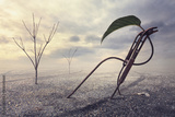 Surrealism fantasy picture with simple background and combine leaf with rusty mechanism