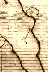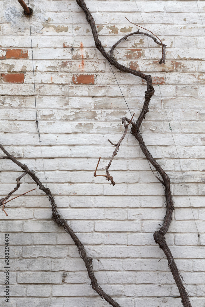 Grapevine twines about the wall.