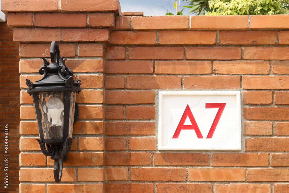Antique electronic lamp, hanging at the wall in the building,soft focus.