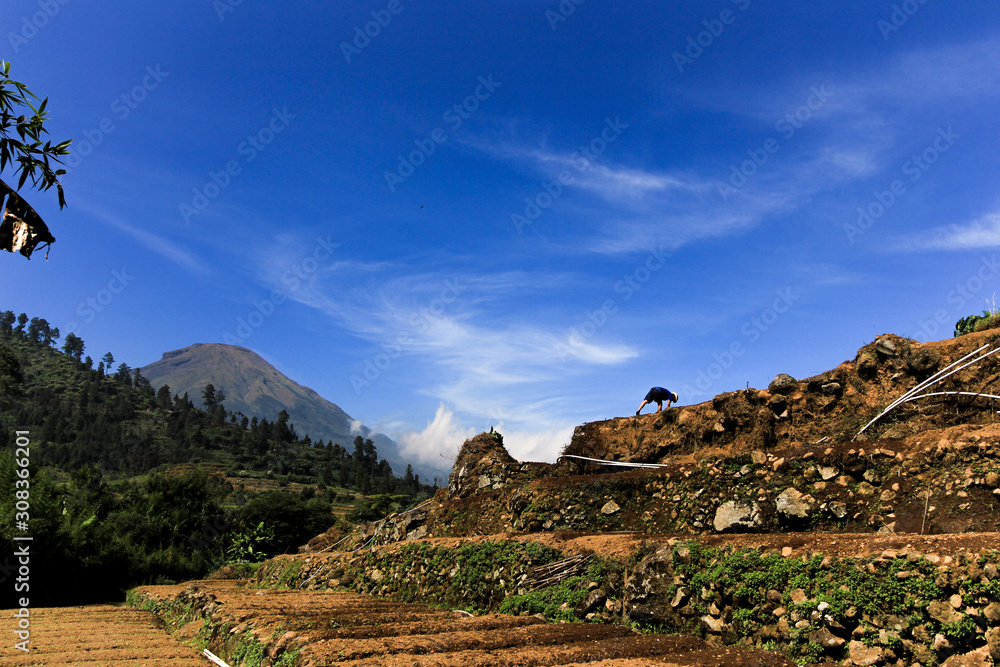 agriculture on sloping mountain slopes in day time