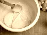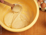Mixing batter. Making yeast pancakes (crepes).