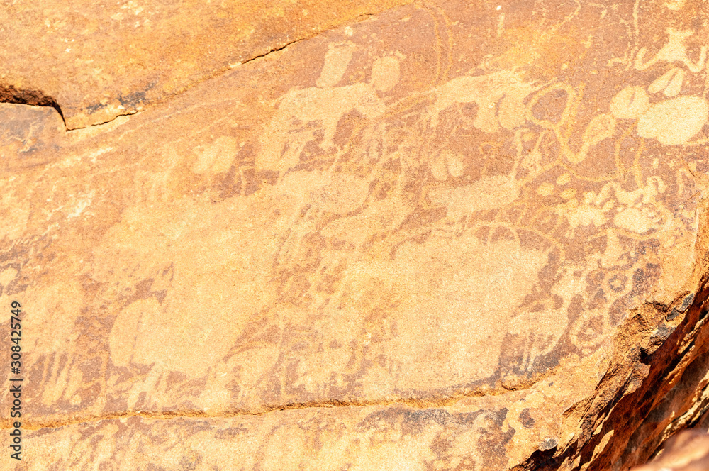 Detail of the prehistoric rock paintings of the San People in Western Namibia, near Twyfelfontein.