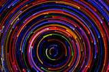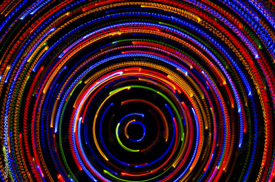 Rotating neon lights, spinning bright colorful laser lights background, modern nightlife and party concept, disco and dancing nightclubs pattern