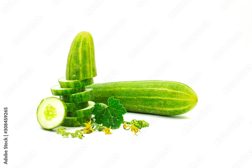 Fresh Cucumber and slices isolated on a white background