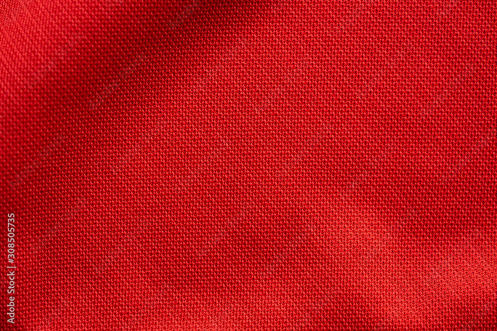 Red sports clothing fabric football jersey texture close up
