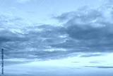 Golden blue sunset sky with light clouds. Vanilla sky. Tranquil skyscape just before the sundown. Pastel scenic cloudscape for background.