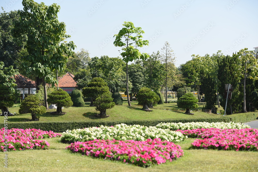Gardens with flowers and ornamental plants.