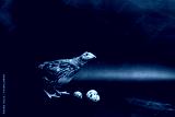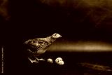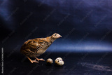 Quail and eggs isolated on Black.Domesticated quails are important agriculture , selective focus