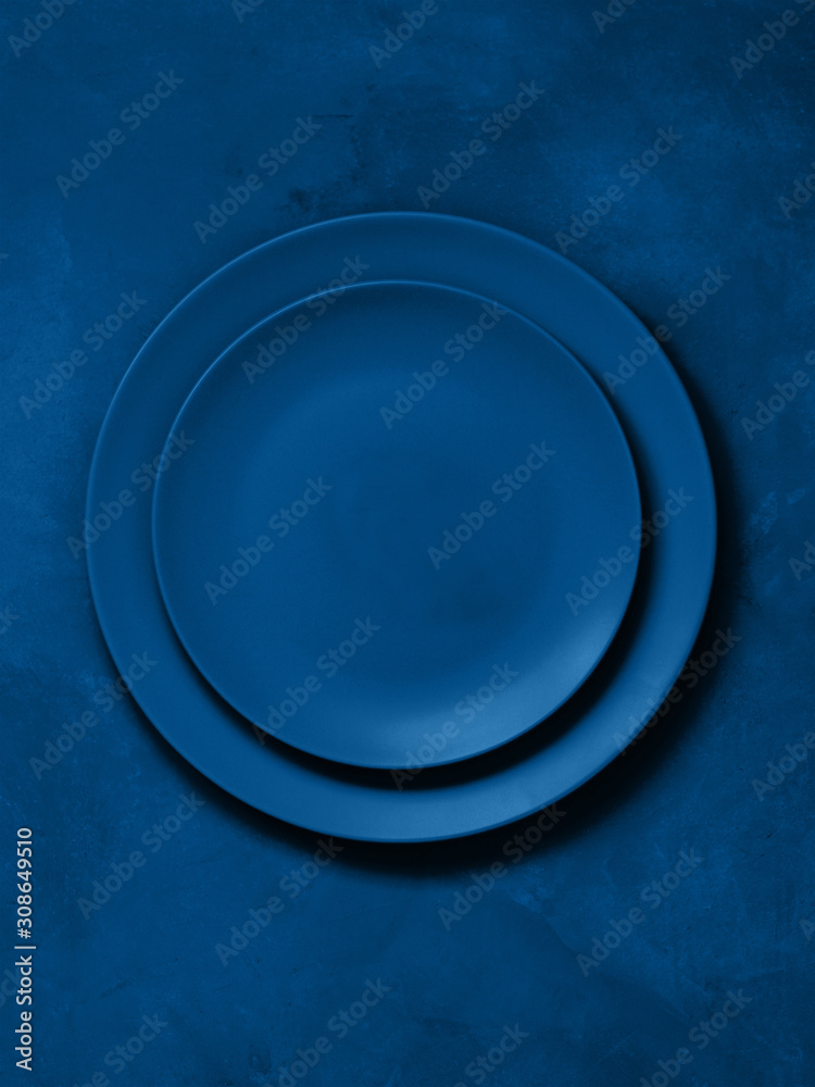 Set of ceramic plates in trend blue classic color