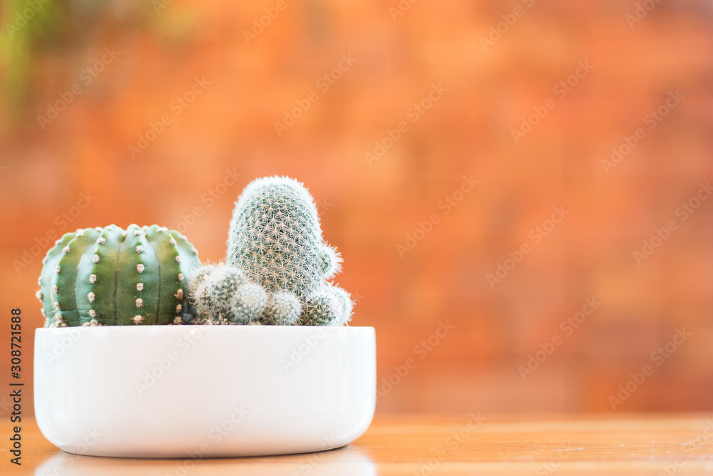 Amazing beautiful cactus On the brown background of bricks.Room decoration with nature, love nature concept
