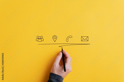 Contact and communication icons on yellow background