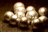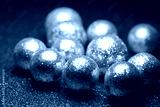 Macro abstract view of glittery silver holiday baubles on a sparkling green background