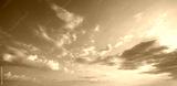 Blue sky clouds background. Beautiful landscape with clouds and orange sun on sky